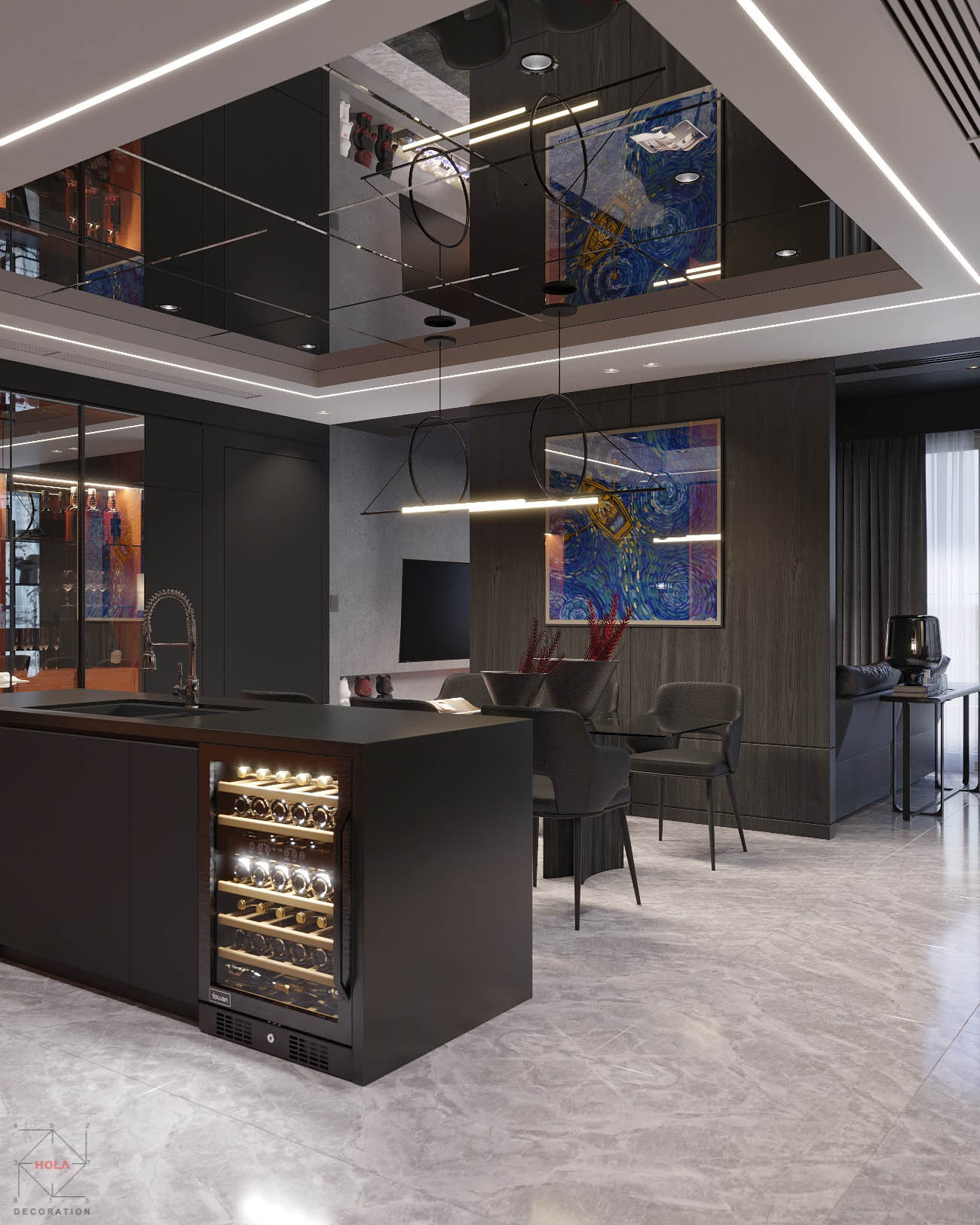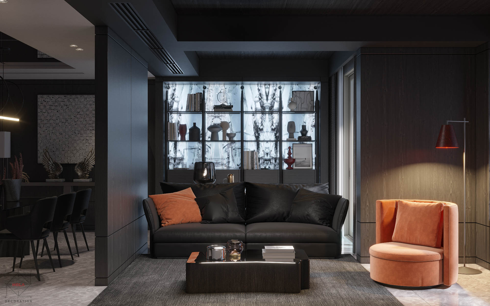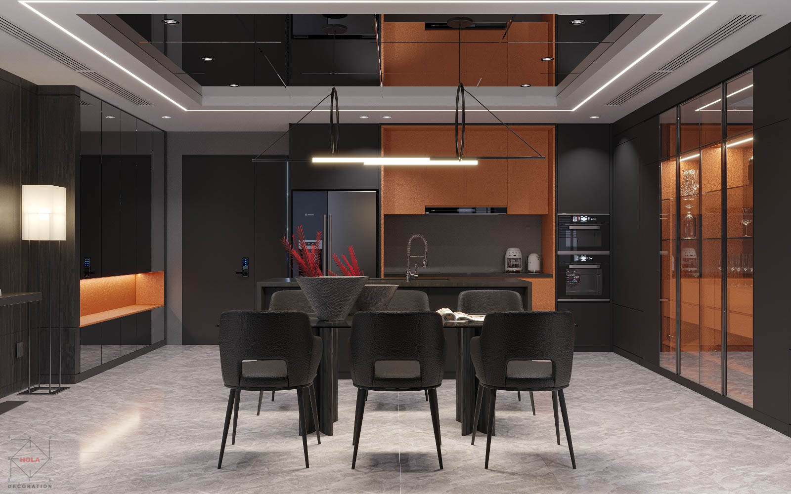 Trước khi trở thành không gian sống hoàn thiện, căn hộ The Peak 118m² được Hola Decor tái hiện qua bản vẽ 3D với tinh thần của sự tối giản và thanh lịch. Từng mảng màu, chất liệu và ánh sáng đều được tính toán tỉ mỉ để truyền tải cảm xúc sống động nhất: gam đen mang lại chiều sâu, trong khi sắc cam khơi gợi hơi ấm và sức sống. Bố cục mở giúp không gian thông thoáng, liền mạch giữa phòng khách – bếp – phòng ngủ, tạo nên tổng thể hài hòa và tinh tế. Bản 3D không chỉ là bản phác họa kiến trúc, mà là nơi Hola Decor kể câu chuyện về phong cách sống đương đại – mạnh mẽ, cảm xúc và đầy cá tính.