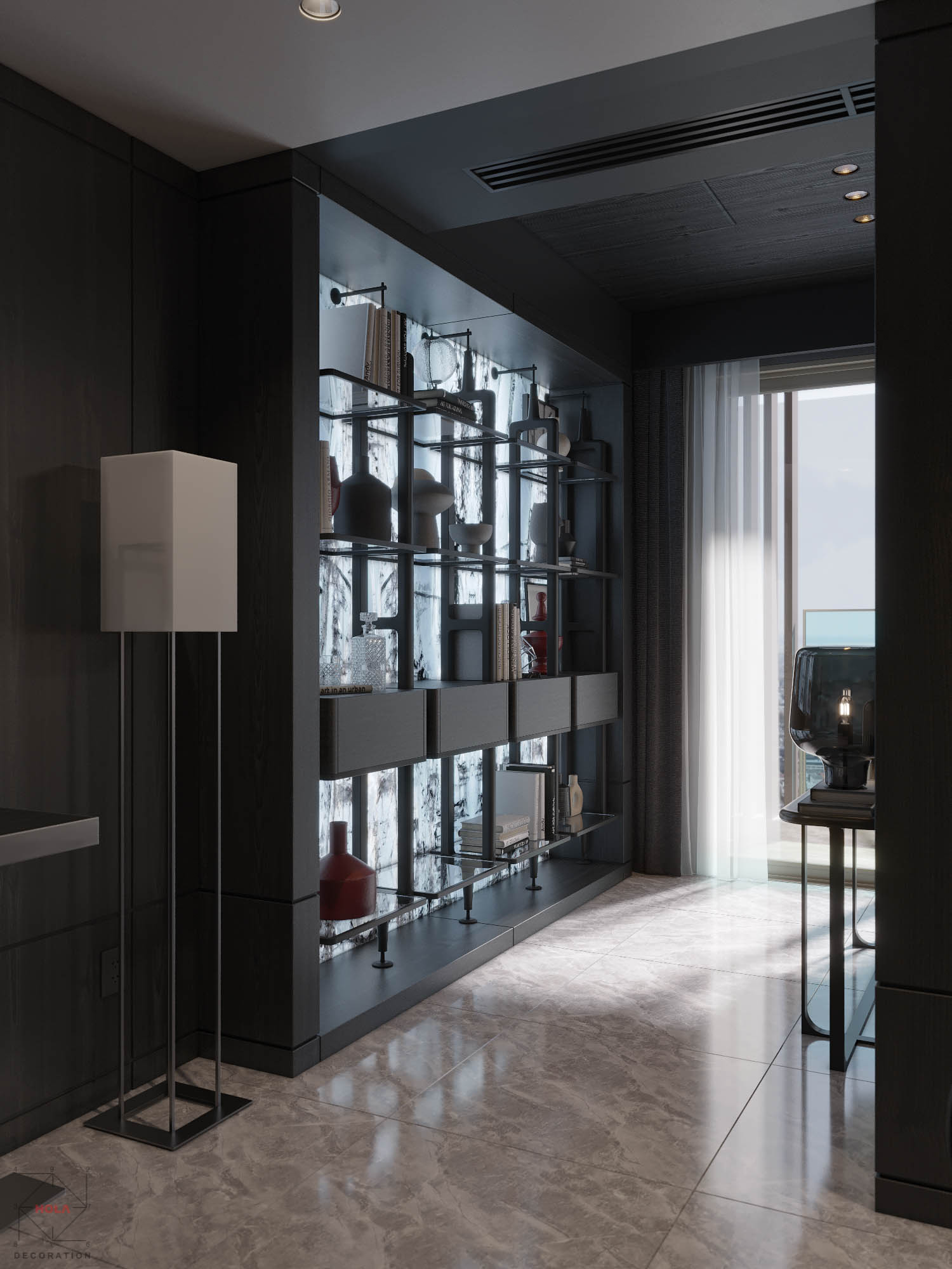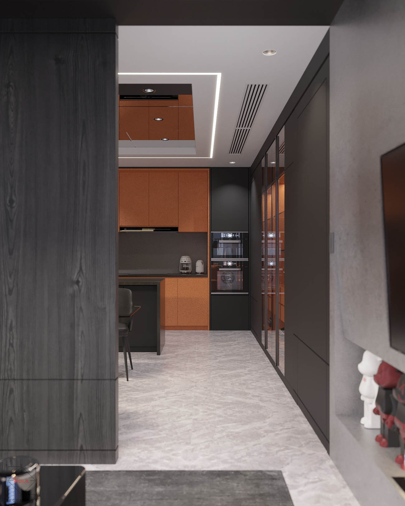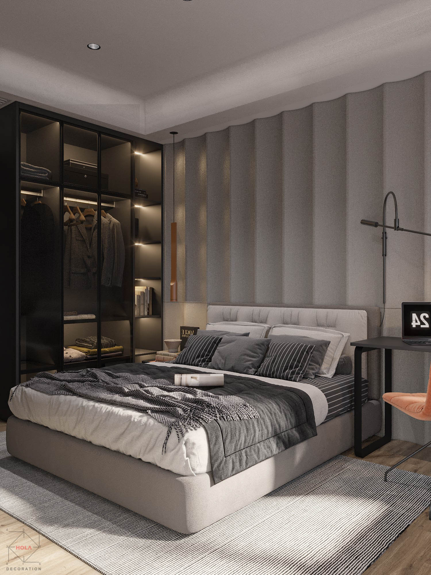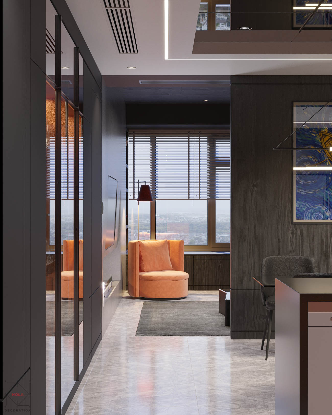 Trước khi trở thành không gian sống hoàn thiện, căn hộ The Peak 118m² được Hola Decor tái hiện qua bản vẽ 3D với tinh thần của sự tối giản và thanh lịch. Từng mảng màu, chất liệu và ánh sáng đều được tính toán tỉ mỉ để truyền tải cảm xúc sống động nhất: gam đen mang lại chiều sâu, trong khi sắc cam khơi gợi hơi ấm và sức sống. Bố cục mở giúp không gian thông thoáng, liền mạch giữa phòng khách – bếp – phòng ngủ, tạo nên tổng thể hài hòa và tinh tế. Bản 3D không chỉ là bản phác họa kiến trúc, mà là nơi Hola Decor kể câu chuyện về phong cách sống đương đại – mạnh mẽ, cảm xúc và đầy cá tính.